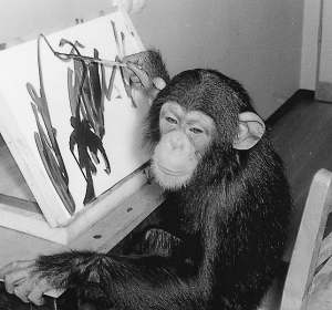 Flusses'... Prof. Dr. Bernhard Rensch, Biologe und Künstler, Prof. Dr. Rensch begann 1954 mit näheren Untersuchungen von ästhetischem Empfinden bei Tieren. Rensch entwickelte unter anderem Methoden, um die ästhetischen Lustgefühle der Affen nachzuweisen, und sie von dem beliebigen Spieltrieb der Tiere zu un- terscheiden. |